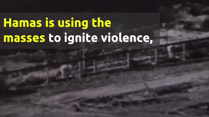 Οι ταραχές ενορχηστρώθηκαν από τη Χαμάς, μια τρομοκρατική οργάνωση που αναγνωρίζεται ως τέτοια από τις ΗΠΑ και την ΕΕ, η οποία απορρίπτει την ειρηνευτική διαδικασία και επιδιώκει την καταστροφή του Ισραήλ. 30.000 εξοργισμένοι Παλαιστίνιοι διαδηλωτές προσπάθησαν να κατακλύσουν και να παραβιάσουν τα σύνορα του Ισραήλ πετώντας φλεγόμενα λάστιχα, πέτρες και βόμβες μολότοφ εναντίον των Ισραηλινών στρατιωτών στα συνοριακά φυλάκια.